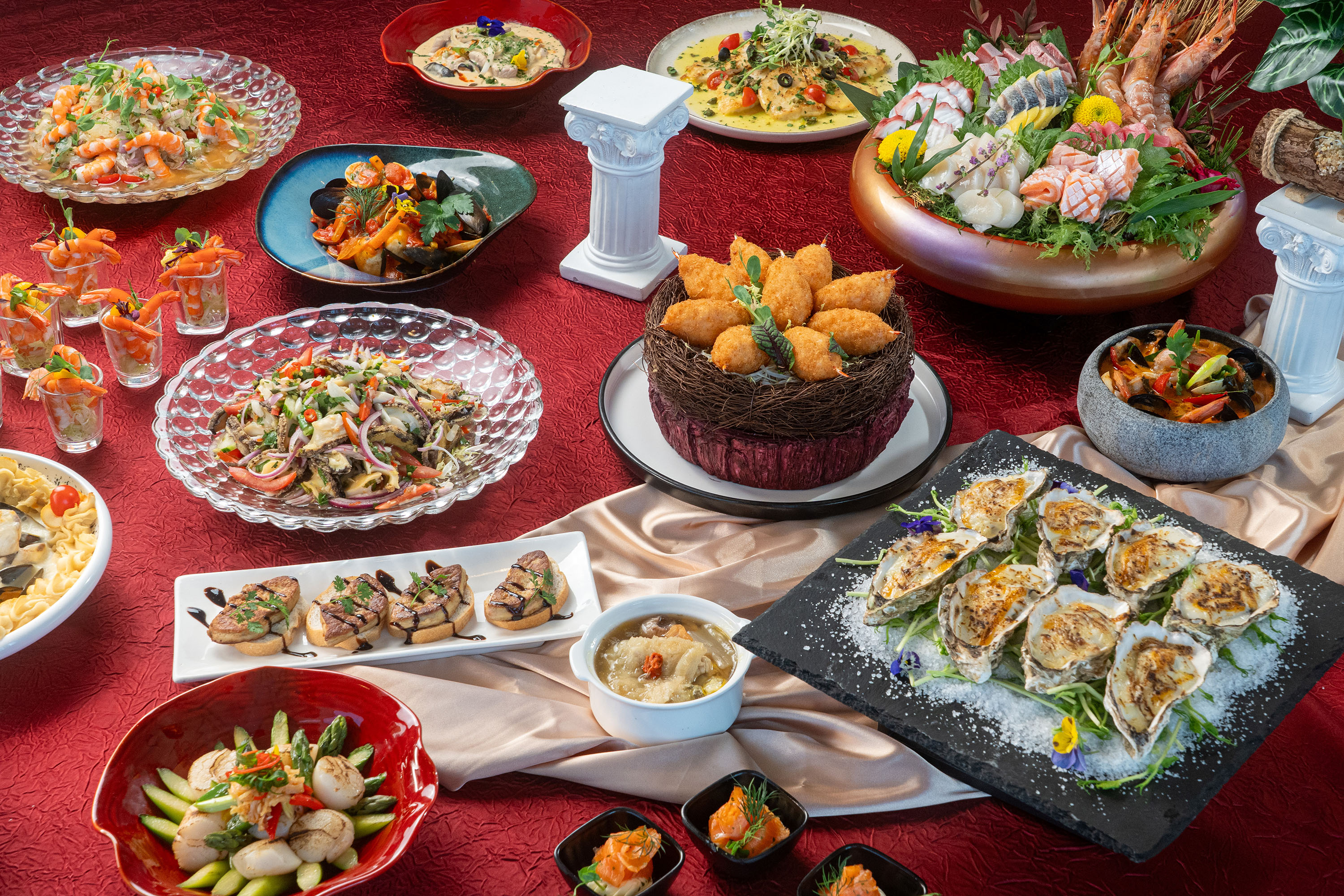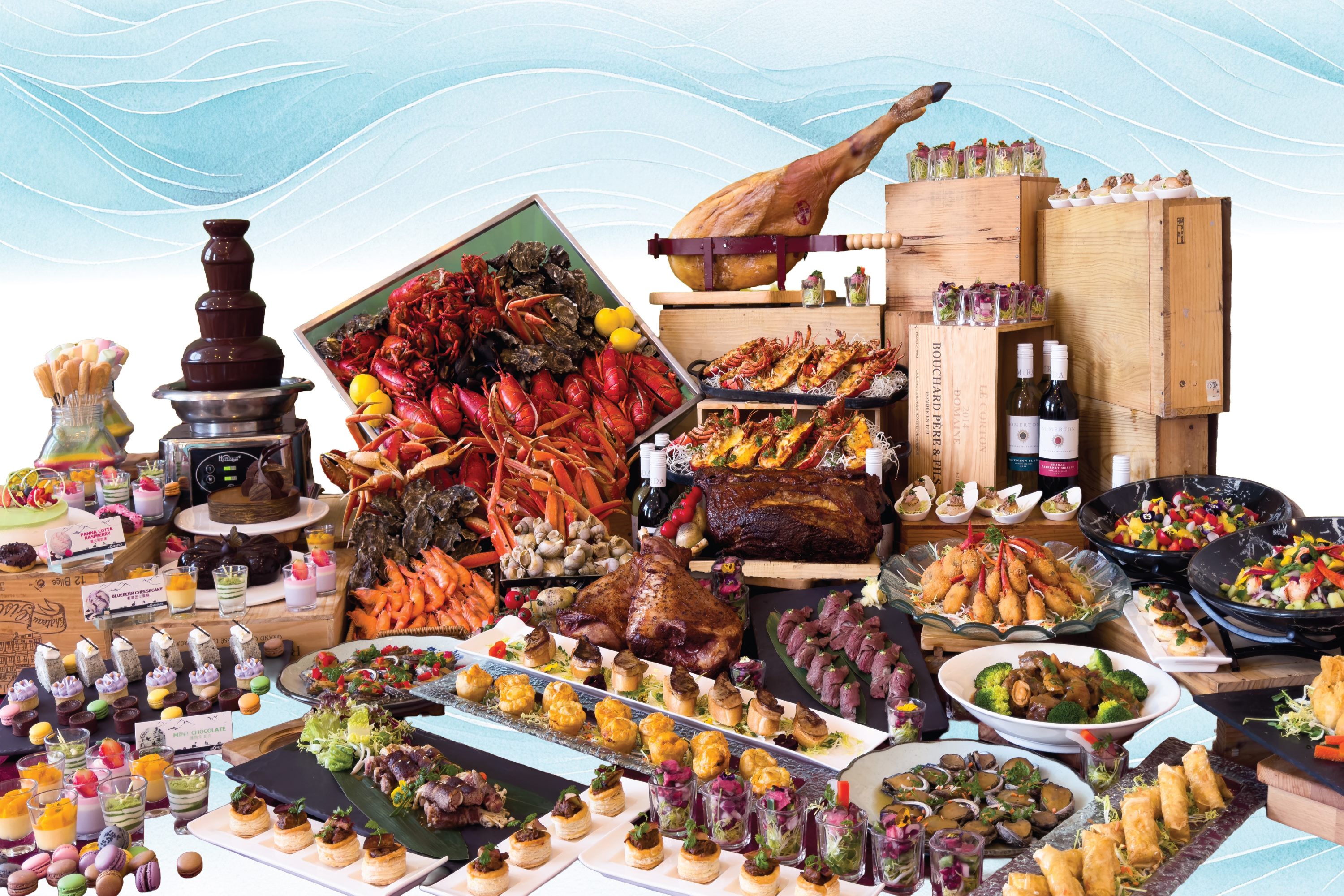 Harbour Grand Café has prepared an extravagant celebration for you! Starting in April, the restaurant proudly introduces the brand-new "Seafood Carnival Dinner Buffet", featuring premium ocean delicacies and global cuisines. An 80-foot-long buffet table showcases an extraordinary feast. Signature dishes include Boston Lobsters, Crab Legs, Large Argentine Prawns, Baked Oysters, Prawn Cocktails, Double-boiled Abalone Soup with Fish Maw and Chicken, Deep-fried Crab Claws with Shrimp Paste, Yuzu Lemon Tart, and Blood Orange Panna Cotta, ensuring you enjoy an unforgettable gourmet experience.