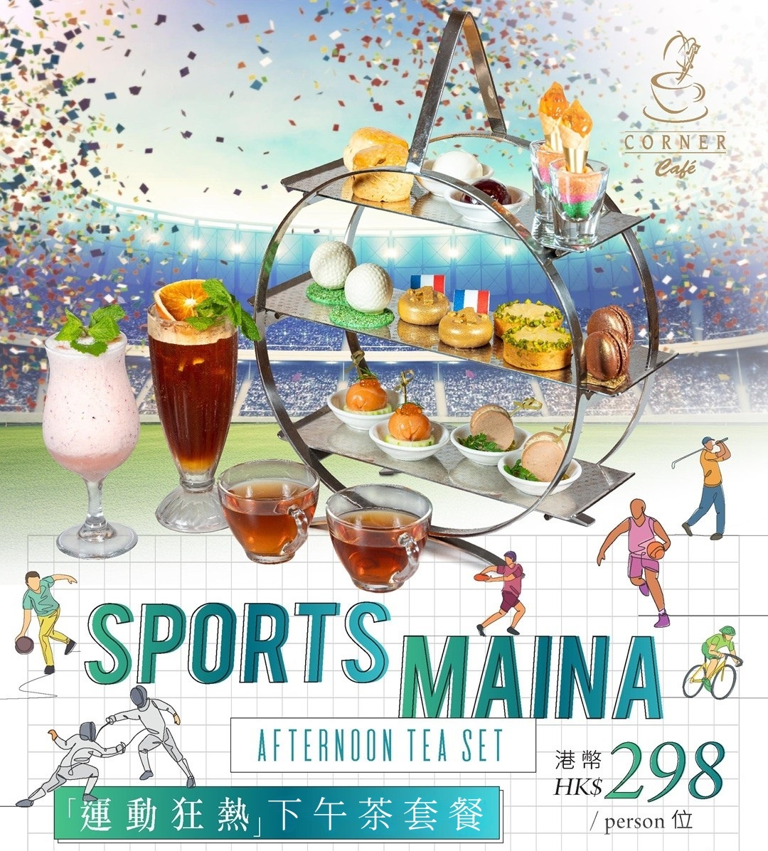 咖啡阁诚邀您细味「运动狂热」下午茶套餐,一同投入年度大型体育盛事的热烈氛围!由饼房总厨匠心打造,融合多项体育赛事元素,炮制出一系列甜咸交织的精致美点,让你犹如置身精彩刺激的赛事现场。